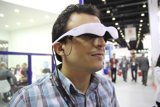 عینک سه بعدی با صفحه نمایش داخلی نیز میتواند برای عاشقان تصاویر سه بعدی جالب باشد. البته کسانی که خود از عینک استفاده میکنند نمیتوانند این عینک را به خوبی روی صورت قرار دهند. برای پخش صدا نیز از هدفون های Creative استفاده شده است.