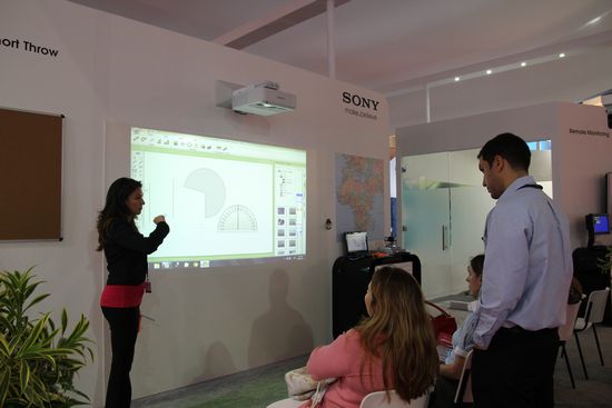 ویدئوپروژکتور های سونی در گروه های مختلف برای امور اداری، آموزشی و تفریحی در غرفه این شرکت واقع در این سالن دیده میشدند. یکی از این ویدئو پروژکتور ها که توسط یکی از مسئولان این شرکت درباره آن توضیح داده شد، میتواند یک تصویر حساس به لمس (با میزان حساسیت بالا) را به نمایش گذاشته و برای استفاده در کلاس های درس و سالن های کنفرانس به خوبی مورد استفاده قرار گیرد.