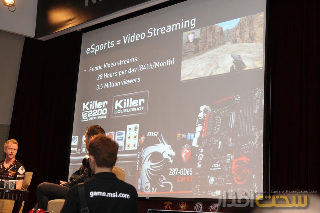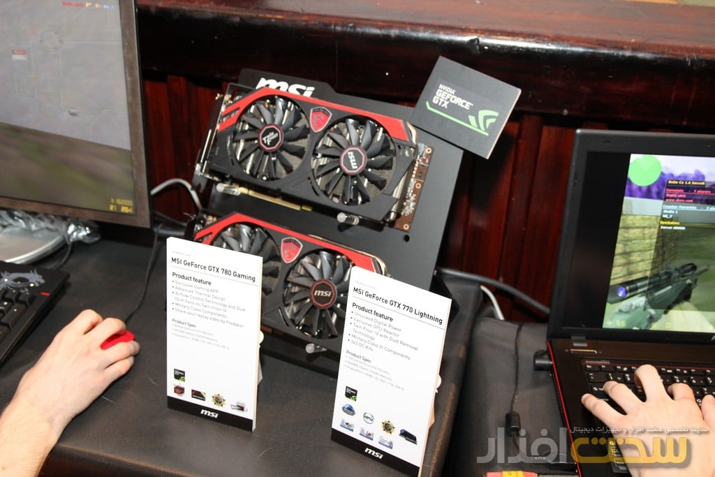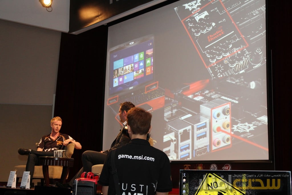 در گوشه و کنار سالن کنفرانس msi، جدید ترین محصولات این کمپانی قرار گرفته بودند تا حضار بتوانند از نزدیک با آنها کار کنند. اعضای تیم Fnatic نیز مشغول انجام بازی (لینک ویدیو) روی برخی از سیستم ها بودند تا به طور عملی قابلیت های این محصولات را به حضور نشان دهند و طی یک مسابقه Counter Strike با دو تیم خبرنگاران علاوه بر کارایی، رقابت جذابی را بوجود اورند.
