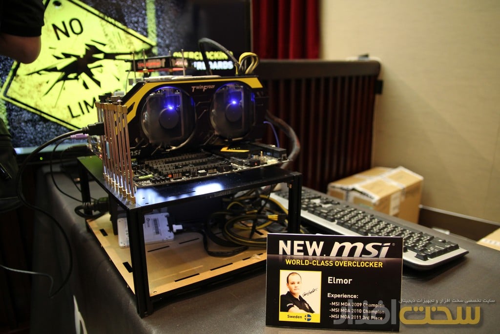 پس از آن بالاخره نوبت به بخش سخت افزاری سمینار رسید که با ارائه گزارشی از محصولات حرفه ای پیشین msi آغاز شد و سپس Elmor اورکلاکس سوئدی که مقام اول مسابقات اورکلاک MSI MOA 2009 و MSI MOA 2010 و مقام سوم MSI MOA 2011 را بدست آورده در سالن حضور یافت. در سالن کنفرانس یک میز اختصاصی اورکلاک با محصولات جدید msi نیز برای او در نظر گرفته شده بود تا نتایج کسب شده از اورکلاک پردازنده Haswell روی مادربوردهای msi را به نمایش بگذارد.