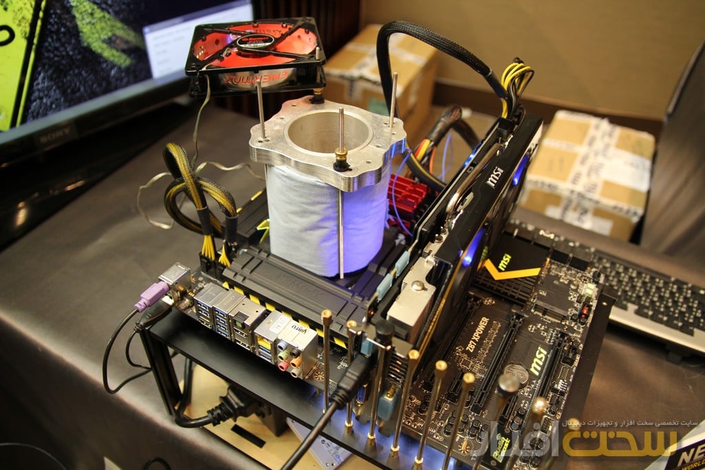 Elmor نیز یک میز اورکلاک اختصاصی در اختیار داشت تا از نزدیک ویژگی های اورکلاک مادربورد های msi را به نمایش بگذارد. این سیستم شامل مادربورد جدید XPOWER بود که پردازنده آن با استفاده از نیتروژن مایع خنک می شد.