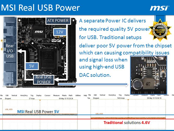 مادربوردهای جدید msi مجهز به چیپست های جدید اینتل در مدل های مختلف دیگری نیز تولید شده اند که مدل های mini-ITX مجهز به چیپست H87 و Z87 از آن جمله هستند. در این مادربوردها برای تامین برق 5 ولت پورت های USB از یک مدار اختصاصی استفاده شده تا مشکلی در اتصال دستگاه های جدید مجهز به پورت USB و تامین برق آنها ایجاد نشود.