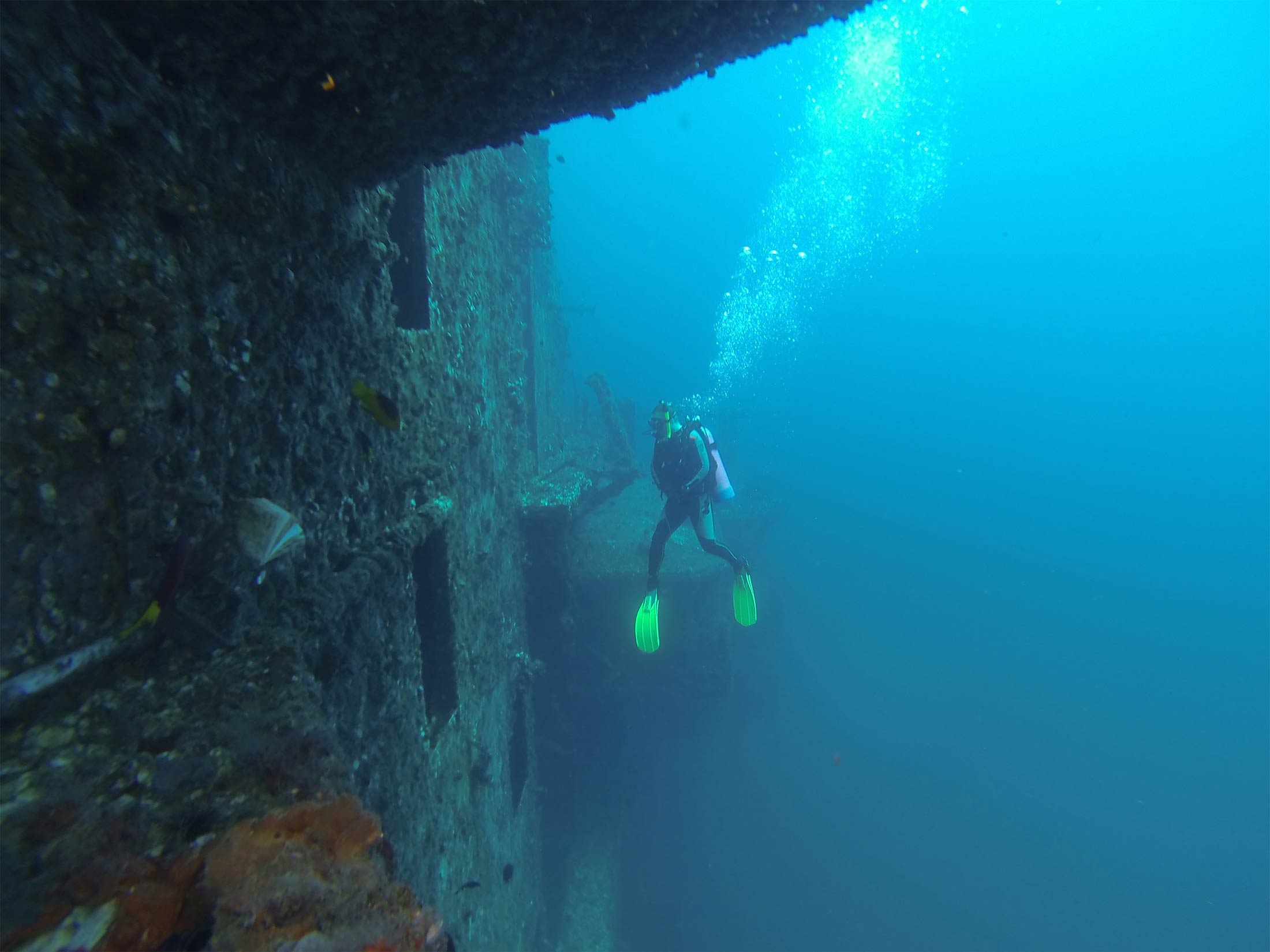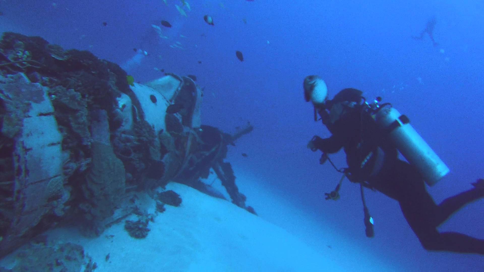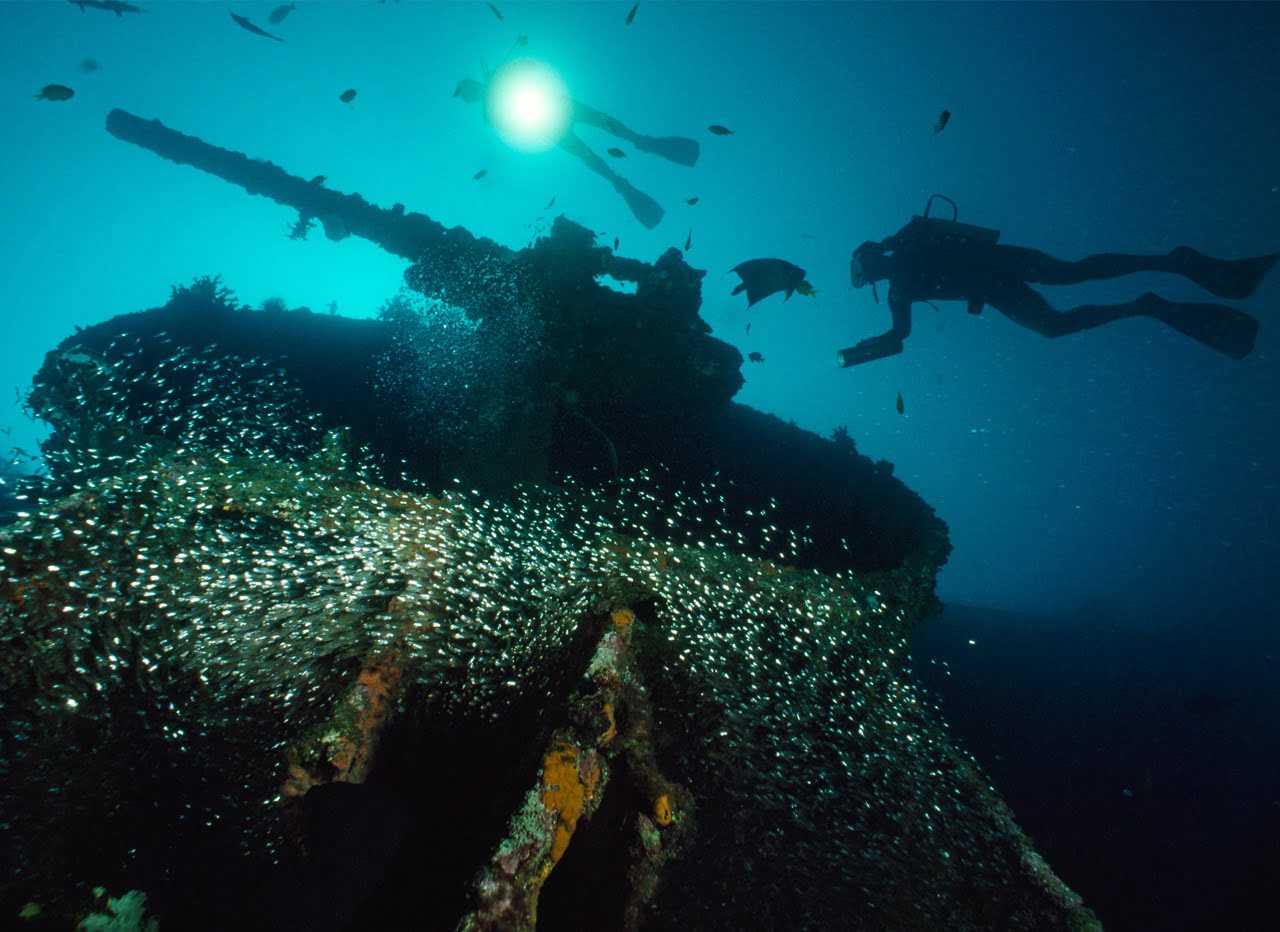 تصور کنید که در هنگام غواصی با همچین تصویری رو به رو شوید! قبرستانی یادگار از بمباران در جنگ جهانی دوم در نزدیکی تالاب چوک (Chuuk).
