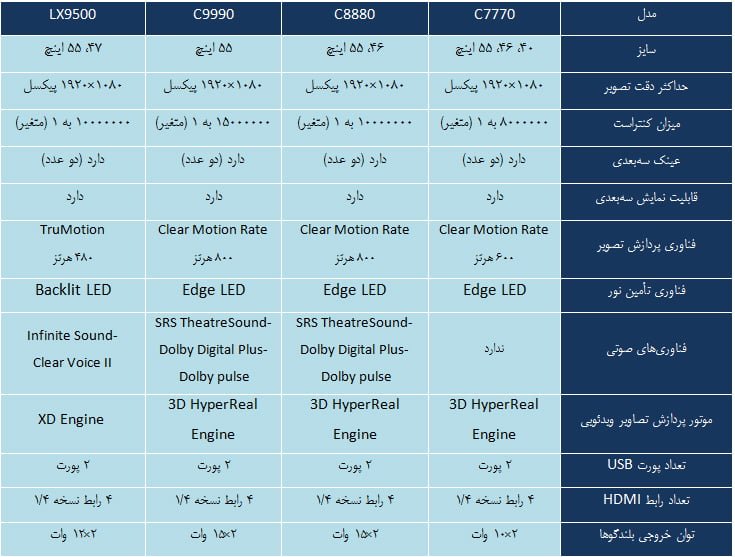 1. فریم این تلویزیونها به رنگ تیتانیوم صیقل دادهاست اما فریم سری C7770 به رنگ قهوهای سوخته است.