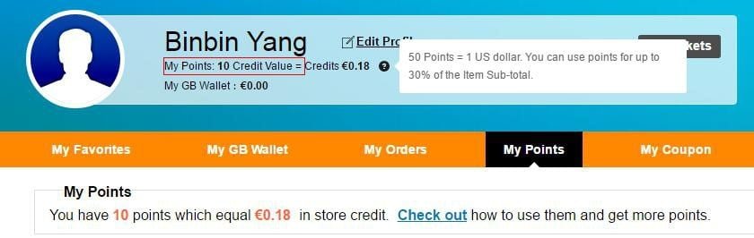 در گیربست به ازای هر خرید امتیازی به حساب کاربری شما اضافه خواهد شد و هر 50 امتیاز معادل 1 دلار خواهد بود. در نتیجه اگر با خریدهای قبلی توانسته باشید 1000 امتیاز به حسابتان اضافه کنید سپس می توانید یک کالای 20 دلاری را به صورت رایگان خریداری کنید. برای این کار کافیست در زمان تایید سبد خرید و پرداخت هزینه ها گزینه Use My Points را انتخاب کنید.