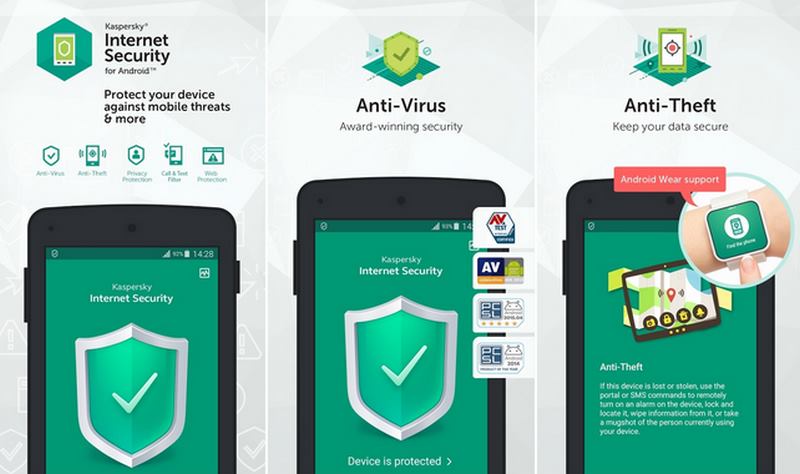کسپرسکی هم مانند Avast از دیگر کمپانی های بسیار با سابقه در زمینه ی تامین امنیت به شمار میرود و این کمپانی برنامه ی امنیتی خود را برای پلتفرم اندروید نیز توسعه داده است. این برنامه از اطلاعات حساس و شخصی شما که در گوشی یا تبلت شما ذخیره شده است در مقابل تهدیدات مختلف مانند ویروس ها ، تروجان و نرم افزار های جاسوسی حفاظت میکند. تمرکز این برنامه همان طور که از نام آن پیداست بر روی تامین امنیت هنگام اتصال به شبکه است اما این بدان معنا نیست هنگام آفلاین بودن کاربردی ندارد و این برنامه امکان جستجوی تمامی فایل های گوشی شما را دارد. این برنامه در هنگام مرور اینترنت وب سایت های مخرب را شناسایی و بلاک میکند. همچنین این اپلیکیشن قابلیت کنترل از راه دور در مواقعی مانند دزدیده شدن گوشی را نیز دارد. قابلیت بلاک کردن مخاطبین و پیام ها و پنهان کردن فایل های شخصی از دیگر امکانات Kaspersky Internet Securuty است. همچنین این برنامه سازگاری کامل با ابزارهای پوشیدنی اندرویدی دارد و امکان نمایش اعلانات این برنامه بر روی گجت های پوشیدنی نیز وجود دارد. Kaspersky Internet Securuty به صورت رایگان و آزمایشی تا 30 روز امکان استفاده دارد و پس از آن میبایست برای استفاده از تمامی امکانات نسخه پریمیوم را خریداری کنید که امکاناتی مانند محافظت ریل تایم خودکار، حافظت وب و حافظت از اطلاعات شخصی را در اختیار شما قرار میدهد.