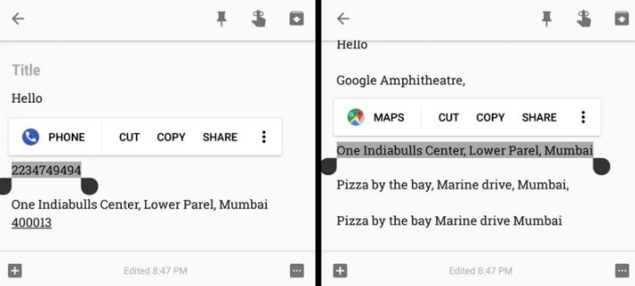 تقریبا از زمان هوشمند شدن گوشی های موبایل همه آنها پس از انتخاب یک یا چند خط متن از سوی کاربر، پنجره پاپ آپ کوچکی را با امکان cut، copy، delete و یا share خط مورد نطظر در اختیار او قرار می دادند. اما در اندروید Oreo شاهد معرفی انتخاب هوشمند خواهیم بود. برای مثال اگر یک خط آدرس را از بین متنی انتخاب کنید سیستم عامل به صورت خودکار به شما امکان نمایش آدرس مورد نظر در نقشه را خواهد داد یا در صورتی که یک شماره تلفن را انتخاب کنید پاپ آپ نمایش داده شده به صورت هوشمند امکان تماس فوری با شماره مورد نظر را فراهم می کند. ویژگی بسیار کوچک و البته پر کاربردی که می تواند به یکی از امکانات محبوب اندروید تبدیل شود.