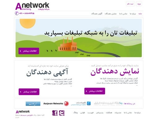 سایت Anetwork.ir سرویسدهنده تبلیغاتی است که تبلیغات تحت وب را مدیریت میکند. در این سایت کاربران به دو دسته نمایشدهنده تبلیغات و تبلیغاتکنندگان تقسیم میشوند. تبلیغاتکنندگان تبلیغات خود را در سایت اضافه میکنند و نمایشدهنده تبلیغات میتوانند با عضویت در سایت و دریافت کد نمایش، تبلیغات داخل شبکه تبلیغات را در سایت خود نمایش دهند. سایتهایی که به عنوان واسطه و مدیریت تبلیغات در وب فارسی فعالیت میکنند کم نیستند اما سرویسدهی این سایتها باعث شده است که سایتهای حرفهای و وبلاگنویسان حرفهای که محتوای سایت برای آنها اهمیت دارد از این کدها استفاده نکنند. نمایش تبلیغات زرد و نمایش محصولات فروشگاههای خاص یکی از دلایل اصلی عدم استقبال کاربران حرفهای وب فارسی از این گونه سایتها است. اما Anetwork این امکان را فراهم کرده است که تبلیغات دریافتی پس از طی کردن چندین فیلتر و بررسیهای فنی و براساس محتوای مرتبط با سایت نمایشدهنده تایید و نمایش داده شوند. از این رو مدیران سایتهاي عمومی، خبری و وبلاگنویسان میتواند با اطمینان خاطر از کدهای تبلیغاتی Anetwork در سایت خود استفاده کنند و اطمینان داشته باشند که تبلیغات زرد و یا تبلیغات سایتهای غیراصولی در سایت و وبلاگشان نمایش داده نمیشود.
