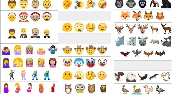 از جمله جالب ترین اموجی های اضافه شده به یونیکد 9.0 می توان به “خندیدن در حالت افتاده بر روی زمین”، “دروغ به سبک پینوکیو”، “face palm” (تعجب و حسرت)، “زن باردار”، “انگشتان به صورت ضربدری”، حیوانات جدیدی مانند عقاب، کرگدن، روباه، گوریل و جغد و ورزش هایی مانند بوکس، ژیمناستیک، کشتی، شمشیربازی و فوتبال اشاره کرد. در ادامه می توانید تعدادی از این موارد را مشاهده کنید: