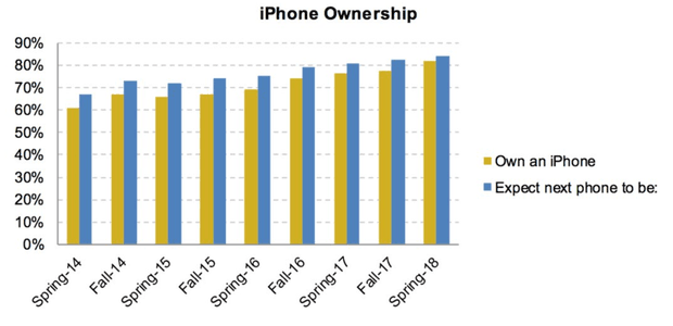 به طور متوسط نوجوانان بیش از هر زمان دیگری علاقه به گوشی های آیفون نشان میدهند. این موضوع توسط آخرین بررسی انجام شده توسط شرکت سرمایه گذاری Piper Jaffray در آمریکا تأیید شده است. نظرسنجی این شرکت از 6000 نوجوان آمریکایی در 40 ایالت مختلف صورت گرفته است و میانگین سنی آنها 16 سال بوده است.