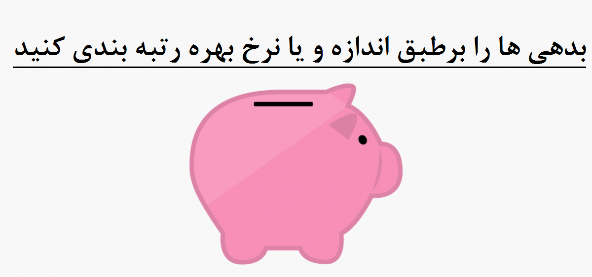 اگر شما بدهی های متعددی داشته باشید، نیاز است که حداقل مقداری از هرکدام از آنها را پرداخت کنید و از باقیمانده پول را برای از بین بردن اولین قرضتان استفاده کنید.