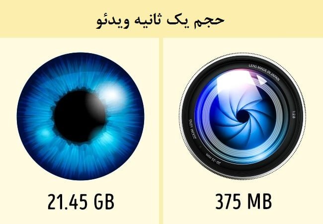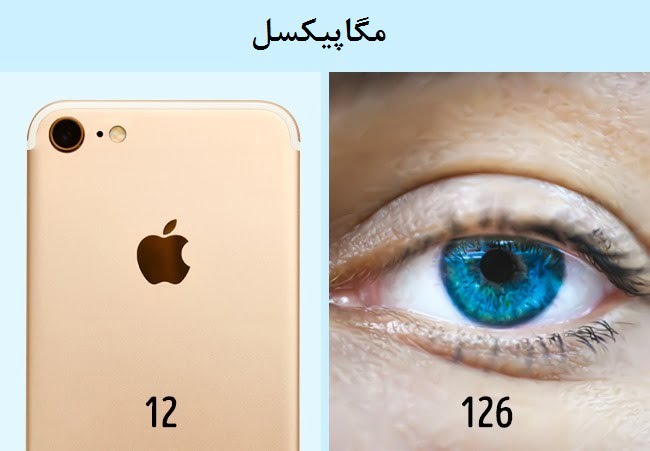 البته از دیدگاه علمی مقایسه چشم و دوربین دیجیتال خیلی درست نیست. اما اگر بخواهیم تقریباً محاسبه کنیم، چشم انسان 126 مگاپیکسل است.