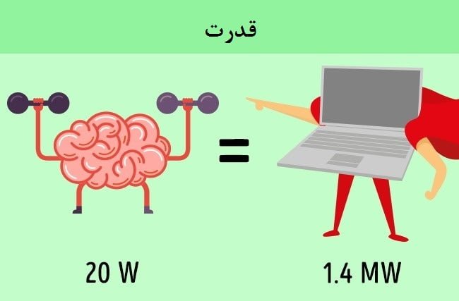 برای مقایسه قدرت مغز (با ظرفیت استاندارد در حدود 20 وات) در عملکرد، شما نیاز به یک ابر کامپیوتر با توان مصرفی 1.4 مگاوات، یعنی 70 هزار برابر بدن انسان نیاز دارید.