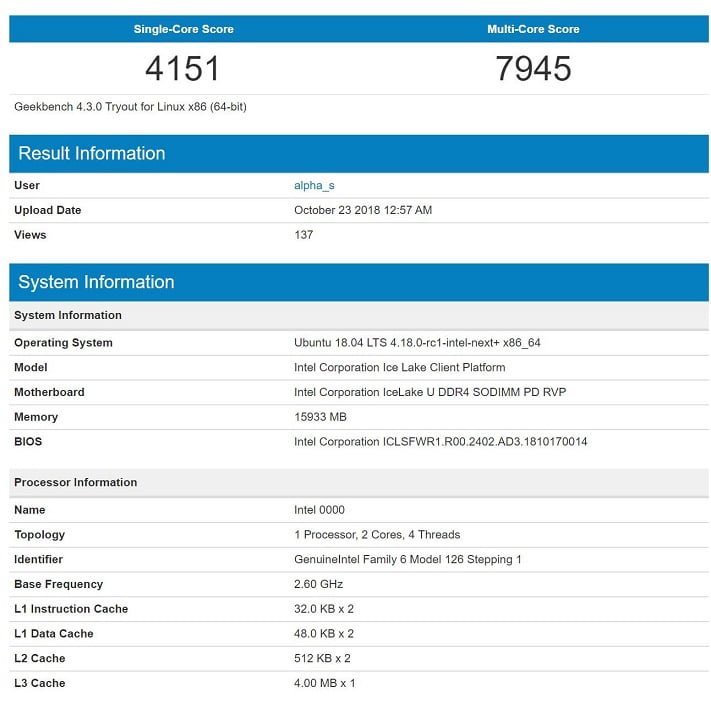 و اما مسئله ای که به تازگی خبر ساز شده است، اطلاعاتی است که از یک مدل میان رده رو به پایین در پایگاه داده Geekbench منتشر شده است. در این اطلاعات، استفاده از ظرفیت حافظه Cache بیشتر در 2 قسمت متفاوت است. به واقع اینتل بعد از مدت ها، ظرفیت حافظه های سطح L1 و L2 را افزایش داده است. حافظه کش سطح L1 از 32 کیلوبایت در نسل پیشین و مشابه (CoffeeLake) به 48 کیلوبایت به ازای هر هسته افزایش یافته است.