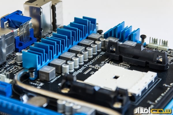 اولین نگاه به این مادربورد و دیدن خنککننده آن من را به یاد آخرین سری مادربوردهای Abit انداخت که به استفاده از یک لوله انتقال حرارت بزرگ خنککننده چیپست را به خنککننده مدار رگولاتور متصل میکرد و علاوه بر ارائه یک راهحل مناسب برای خنککردن چیپستهای داغ آن زمان، ظاهری جالب نیز به مادربوردها میبخشید. با پیشرفت فناوری و کم شدن توان مصرفی قطعات، نیاز به خنککنندههای پیچیده نیز کاهش پیدا کرده و شاید بتوان گفت، تعبیه یک لوله انتقال حرارت بزرگ و ضخیم در این مادربورد جنبه زیبایی داشتهباشد (ما که از آن راضی هستیم!). خنککننده مدار رگولاتور هشت فاز این مادربورد به دو قسمت تقسیم شده که میتوان گفت، این نوع طراحی برای کاهش هزینهها اعمال شدهاست.