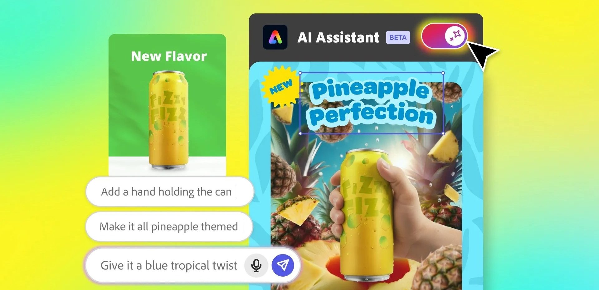 در حالیکه بسیاری از شرکتها تمایل دارند دستیارهای هوش مصنوعی را در نوار کناری برنامههای خود قرار دهند تا از محتوای روی صفحه استفاده کنند؛ ادوبی در اکسپرس یک حالت کاملاً جدید ایجاد کرده که به کاربران امکان میدهد با استفاده از پرامپتهای متنی، تصاویر و طرحهای تازه تولید کنند. کاربران میتوانند حالت دستیار را فعال کرده تا از قابلیتهای هوش مصنوعی برای تولید محتوای گرافیکی بهره ببرند؛ سپس با بازگشت به حالت ویرایش، از ابزارها و کنترلهای موجود در نسخه فعلی اکسپرس استفاده کنند.