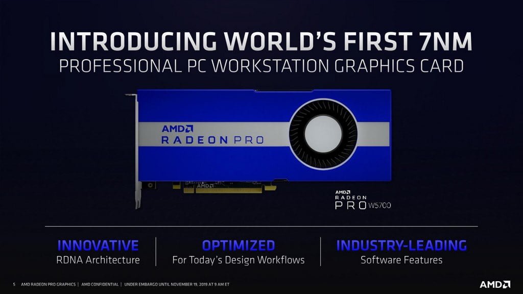 AMD از کارت گرافیک ورک استیشن Radeon Pro W5700 با معماری 7 نانومتری رونمایی کرد