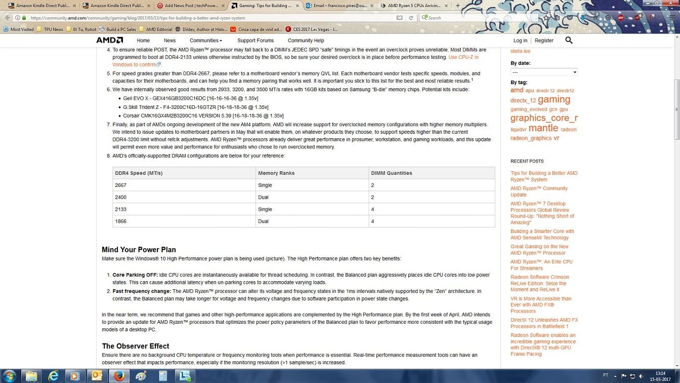 مسائل مرتبط با پشتیبانی از حافظه های رم در پلتفرم AMD AM4/ZEN همچنان ادامه دارد؛ علاوه بر عدم توانایی در سرعت های بالا، تداخل های فنی و ناسازگاری های جزئی نیز گزارش شده است. در همین راستا تیم مهندسی AMD به دنبال یافتن یک راه حل، بیانیه ای را در وبلاگ رسمی این شرکت منتشر کرده اند که ظاهرا آخرین تلاش های این شرکت جهت رفع عیوب را حکایت می کند. “Tips for Building a Better AMD Ryzen System” (توصیه هایی جهت ساخت یک سیستم بهتر AMD) عنوان مطلبی است که در وبلاگ این شرکت منتشر شده است. AMD اینبار به زبان ساده درصدد کمک به خریداران خود برآمده و در این مطلب متوسط فنی اطلاعات مفید بسیاری را جای داده است. نخستین مورد قابل توجه آن است که پلتفرم AMD Ryzen قادر به تقسیم حافظه در فرکانس های DDR4 3000 Mhz/DDR4 3200 Mhz نیست؛ در نتیجه AMD توضیه می کند که کاربران “حداکثر” از ماژول های رم 3200 Mhz با سرعت 3500 MT/s استفاده نمایند.