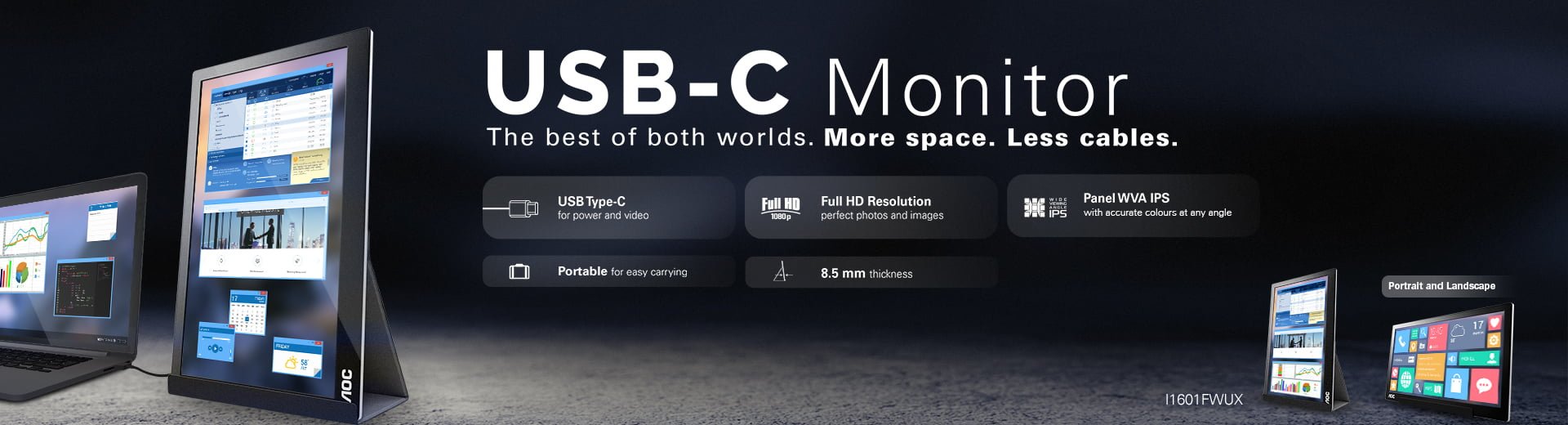 مانیتورهای پرتابل یا قابل حمل چندان در بازار ایران شناخته شده نیستند اما کاربردهای آنها در سایر نقاط جهان به قوت خود باقی است؛ کمپانی AOC به تازگی یک مانیتور قابل حمل و پیشرفته را به محصولات خود افزوده است که با نام AOC I1601FWUX شناخته می شود. این مانیتور از اینترفیس USB-C برای اتصال به انواع ادوات موجود استفاده کرده و علاوه بر پوشش ضد خش که یک کاور ساده اما کارآمد است، دارای یک پایه برای استفاده های آنی و سریع است.
