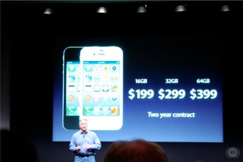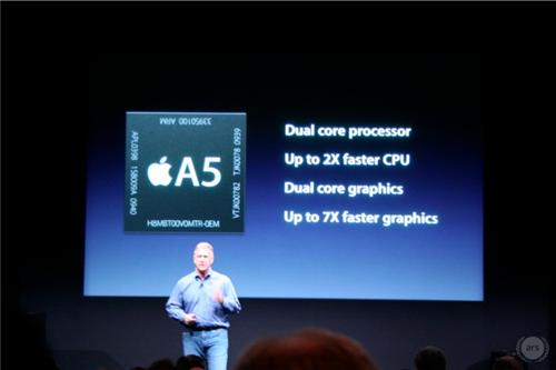 و بالاخره نوبت به iPhone 4S می رسد که ظاهر آن کاملاً مشابه iPhone 4 است. پردازنده به A5 (پردازنده iPad 2) ارتقا یافته که دارای دو هسته پردازشی است. او می گوید که قدرت پردازشی گرافیکی هفت برابر در مقایسه با iPhone 4 افزایش پیدا کرده است. قرار است در اول دسامبر بازی Infinity Blade 2 به طور اختصاصی برای این تلفن هوشمند عرضه شود.