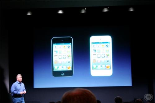 او سپس به iPod Touch اشاره می کند که با ارائه iOS 5 قابلیت های آن بسیار افزایش خواهد یافت. همچنین قرار است نسخه سفید رنگ این دستگاه نیز عرضه شود (از تاریخ 12 اکتبر). قیمت iPod Touch با ظرفیت 8 گیگابایت به 199 دلار کاهش یافته است. مدل 32 گیگابایتی و 64 گیگابایتی نیز به قیمت های 299 و 399 دلار عرضه خواهند شد.