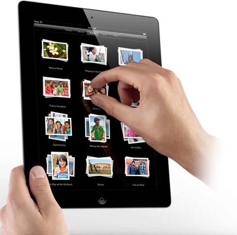 بهطور حتم یکی از نکات قابل توجه و تامل در یک تبلت، صفحهنمايش آن است، زیرا بیشتر از هرچیزی با آن سر و کار دارید. شما با صفحهنمايش فیلم میبینید، بازی میکنید، وارد اینترنت میشوید، تایپ میكنید و خلاصه هرکاری که قصد انجام آن را دارید، باید مجوزی را از صفحهنمايش دریافت کنید! البته برخلاف انتظارات، تغییر در دقت تصویر و اندازه صفحهنمايش ایجاد نشده است و همان نمونه قبلی 9/7 اینچی با دقت 768×1024 پیسکل مهمان دیدگان شما است. البته همهچیز مانند سابق نمانده و روشنایی و بهخصوص زاویه دید صفحهنمايش افزایش داشته است که همین امر سبب شده تا تأثیر بهسزایی در بهتر شدن کیفیت صفحهنمايش داشته باشد (در اين صفحهنمايش مانند گذشته از فناوری نور پس زمينه LED و IPS استفاده شده است و تراكم پيكسل آن مانند آیپد نسل اول 132 پيكسل در اينچ است). درباره فناوری لمس، فکر نمیکنیم دیگر کسی شکی درباره آن داشته باشد. در واقع اپل که خود یکی از پیشتازان استفاده از صفحهنمايشهای لمسی است، در آیپد 2 نیز از يكي از بهترين فناوریهای موجود در اين زمينه در كنار فناوری مولتیتاچ معروف که با اولين سری از گوشیهای آیفون به بازار معرفی شد، استفاده كرده است.