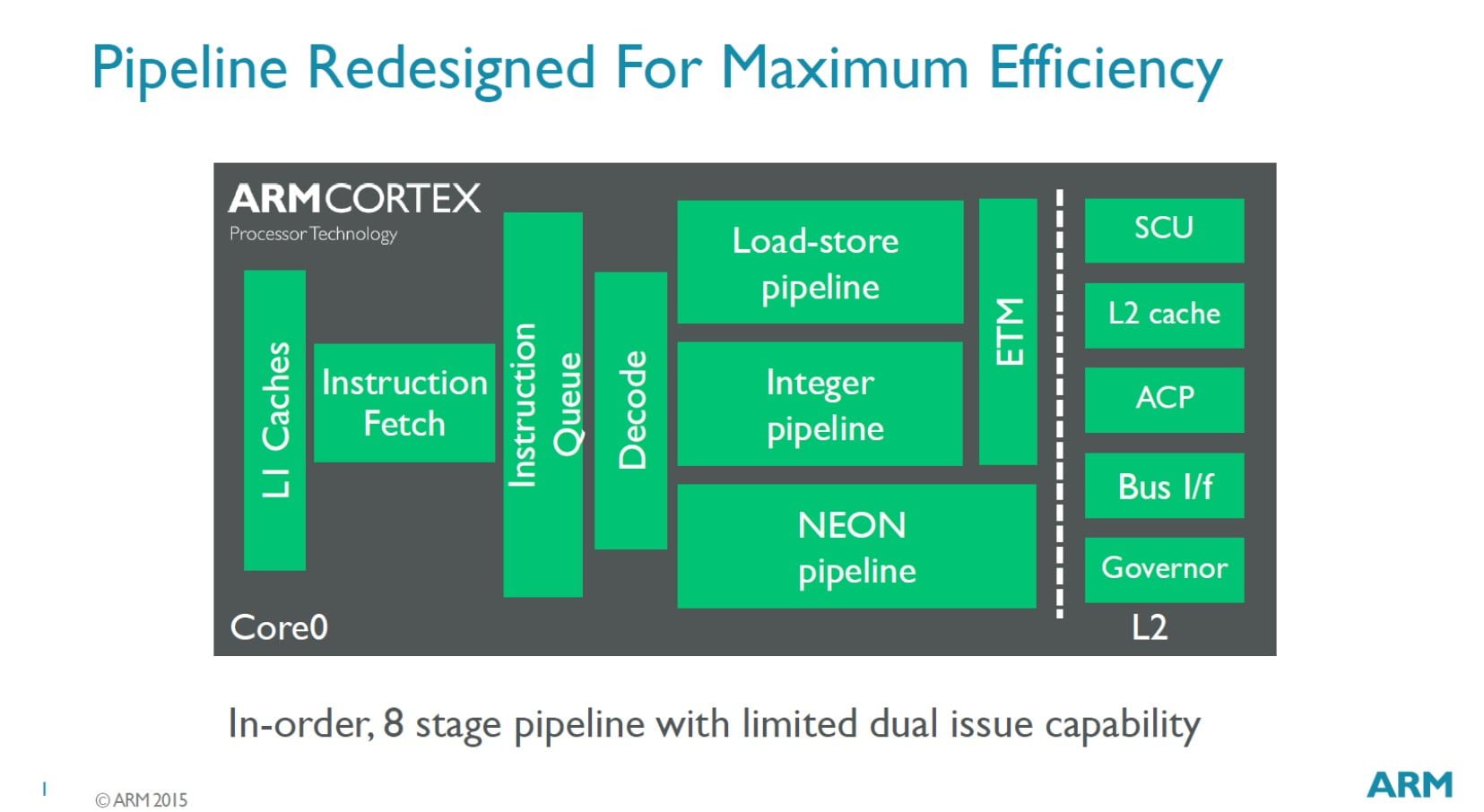 شرکت ARM که معرف حضورتان هست؟! هسته های پردازشی سری Cortex این شرکت یا نمونه های تغییر یافته آنها همچون Snapdragon Kirit حاکم بازار SoC های موبایل به حساب می آیند و در غالب گوشی ها و تبلت های بازار آنها را به سادگی خواهید یافت. ARM اخیرا و با معرفی پردازنده گرافیکی Mali-T470 از هسته پردازشی تازه ای به نام Cortex-A35 پرده برداشته که بازار هدف آن عمدتا ابزارهای هوشمند پوشیدنی بوده و راندمان بالاتری را نسبت به هسته های 64 بیتی Cortex-A53 ارائه می دهد.