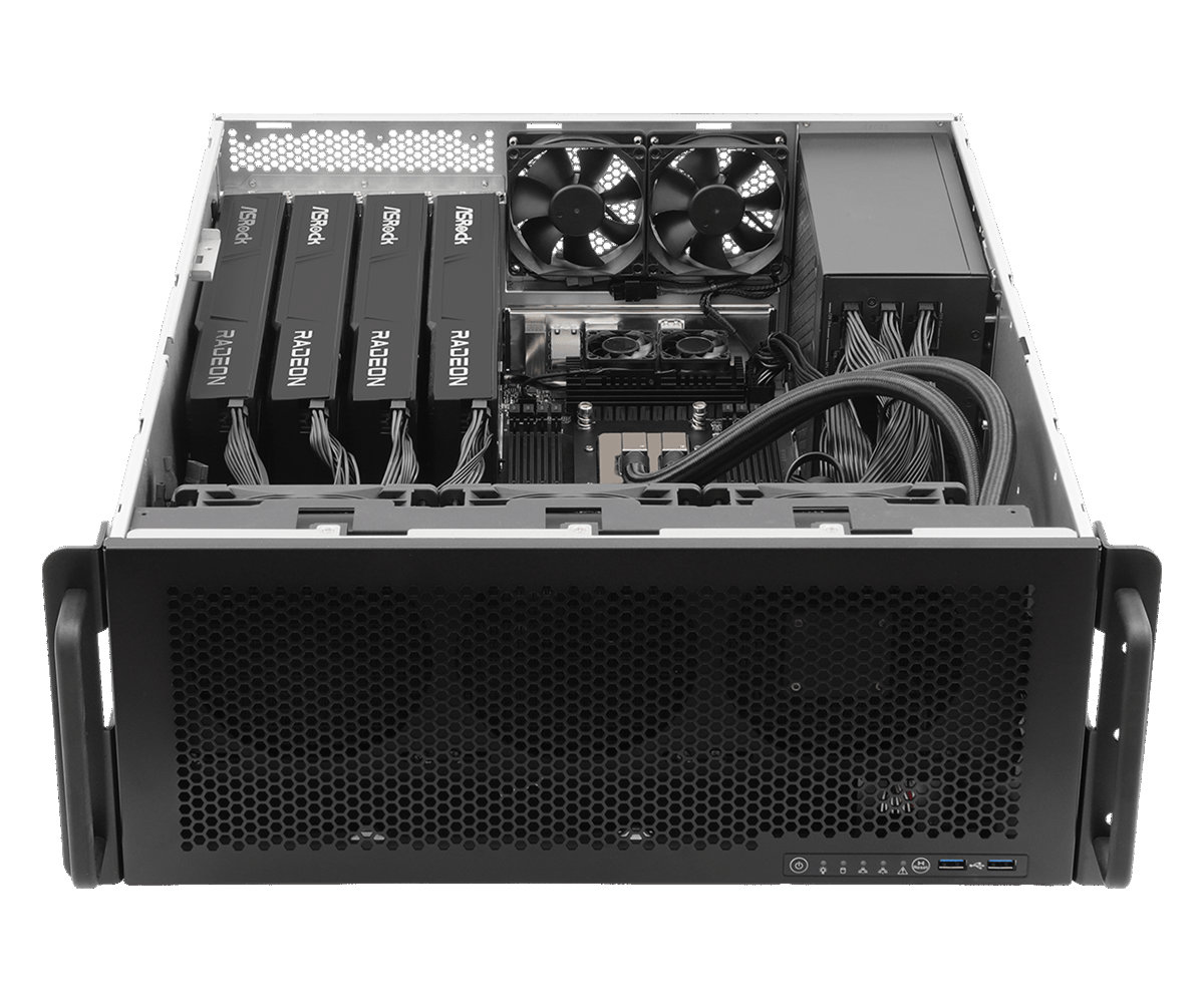 همانطور که گفته شد، این سیستم 4U قابل نصب در رک به چهار کارت گرافیک Radeon AI PRO R9700 Creator با 32 گیگابایت حافظه مجهز شده است و از پردازنده‌های AMD Ryzen Threadripper PRO سری 9000 و 7000 WX پشتیبانی می‌کند. صفحه محصول به وضوح نشان می‌دهد که این مدل فقط برای مشتریان تجاری طراحی شده است و از طریق کانال‌های خرده‌فروشی فروخته نخواهد شد، با این اوصاف، کمپانی ازراک با عرضه این سیستم بر بازار B2B و SI تمرکز خواهد کرد.