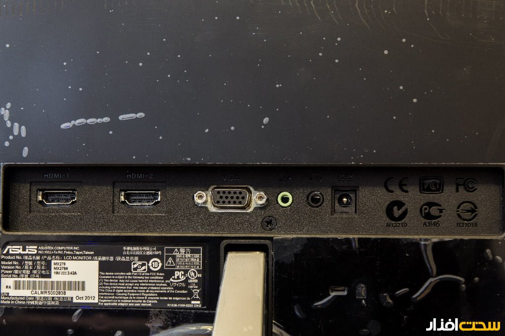 اگر بخواهيم MX279H را از لحاظ امکانات ارتباطي با رقباي همسطح آن مقايسه کنيم، بايد بگوييم اين محصول در سطح خوبي قرار دارد اما هنوز جاي بعضي امکانات ارتباطي در اين محصول خالي است که بتواند بعضي رقباي خود را پشت سر بگذارد. اين محصول مجهز به دو پورت HDMI نوع1.4 است که امکان پخش صدا و تصوير را با بهترين کيفيت ممکن فراهم ميسازد. البته ايسوس براي مديريت فضا اين امکان را فراهم کرده تا در صورت عدم وجود پورت HDMI با استفاده از مبدل HDMI به DVI-D بتوانيد کامپيوتر خود را به اين صفحهنمايش متصل کنيد. علاوه بر اين، يک پورت D-Sub، يک جک 3/5 ميليمتري ورودي صدا براي انتقال صدا هنگام استفاده از رابطهاي D-Sub و DVI به صفحهنمايش و يک جک 3/5 ميليمتري خروجي هدفون در نظر گرفته شدهاست. البته در اين ميان جاي پورت DP که امروزه در صفحهنمايشهاي حرفهاي ديدهميشود، خالي است که اين موضوع ميتواند بهعنوان يک امتياز منفي در اين محصول براي کاربران حرفهاي در نظر گرفتهشود.(تصوير 5).