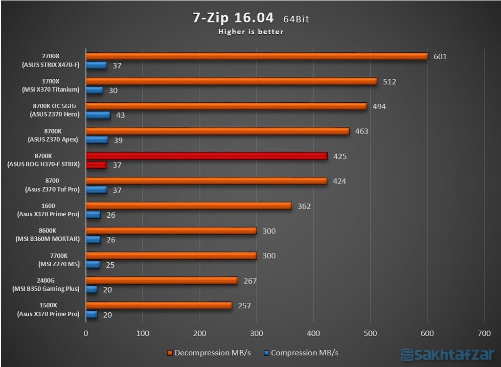 پردازنده های دوست داشتنی Coffee Lake که به مانند نسل پیشین خود، 14 نانومتری ساخته می شوند، به نسبت Kaby Lake از بهینه سازی های گسترده ای برخوردار می باشند. در خانواده Coffee Lake، برای اولین بار، تعداد هسته های پردازنده های Core i7 به شش و تعداد رشته های پردازشی آن به 12 عدد افزایش یافته است. برای اولین بار حداکثر فرکانس Turbo پردازنده پرچمدار Core i7 برابر 4.7 گیگاهرتز می باشد. میزان کش Level3 متناسب با افزایش تعداد هسته ها افزایش یافته است. برای اولین بار، تعداد هسته های پردازنده های Core i5 به شش عدد افزایش یافته است. برای اولین بار پردازنده های Core i3 تعداد 4 هسته ی واقعی خواهند داشت. موارد فوق، در کنار افزایش فرکانس پایه رم به 2666 مگاهرتز برای Core i7 و Core i5، نشان از افزایش قدرت تصاعدی هشتمین نسل از پردازنده های Core i اینتل در رده ی Mainstream است. امروز برای بررسی مادربرد H370-F STRIX از پردازنده ی i7 8700K استفاده می کنیم که شرکت محترم ایسوس در اختیار ما قرار داده است. اگرچه پسوند K این پردازنده خبر از ضریب باز بودن آن می دهد، اما چیپست H370 هیچ امکانی برای اورکلاک ندارد و در نهایت می توان از قدرت پیشفرض 8700K بر روی این مادربرد استفاده کرد. حداکثر فرکانس مورد پشتیبانی در چیپست H370 نیز برابر 2666 مگاهرتز است که رمها در این فرکانس به صورت دستی ست شده اند.