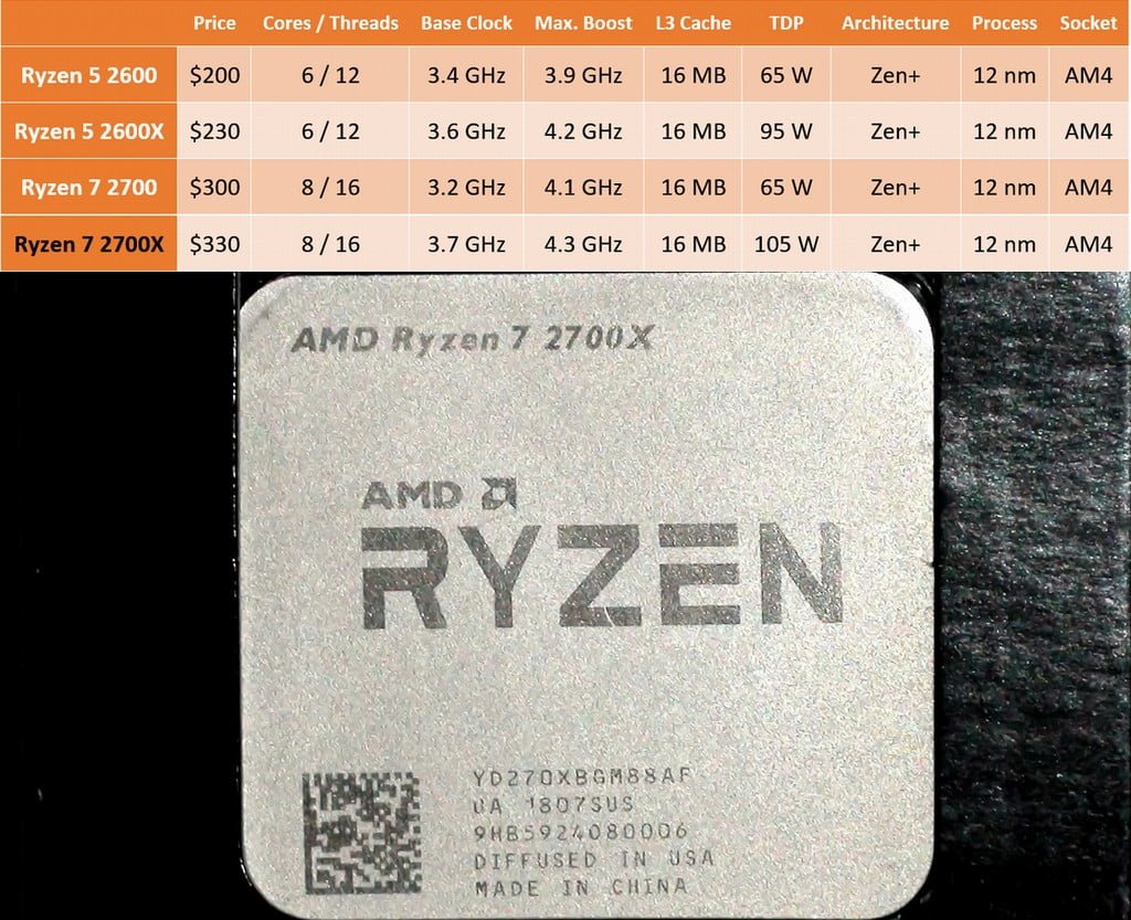 طبق چارت منتشر شده از طرف AMD، در حال حاضر مجموع 4 پردازنده Ryzen 2 وارد بازار خواهند شد که فعلا پرچمدار آنها Ryzen 7 2700X است.
