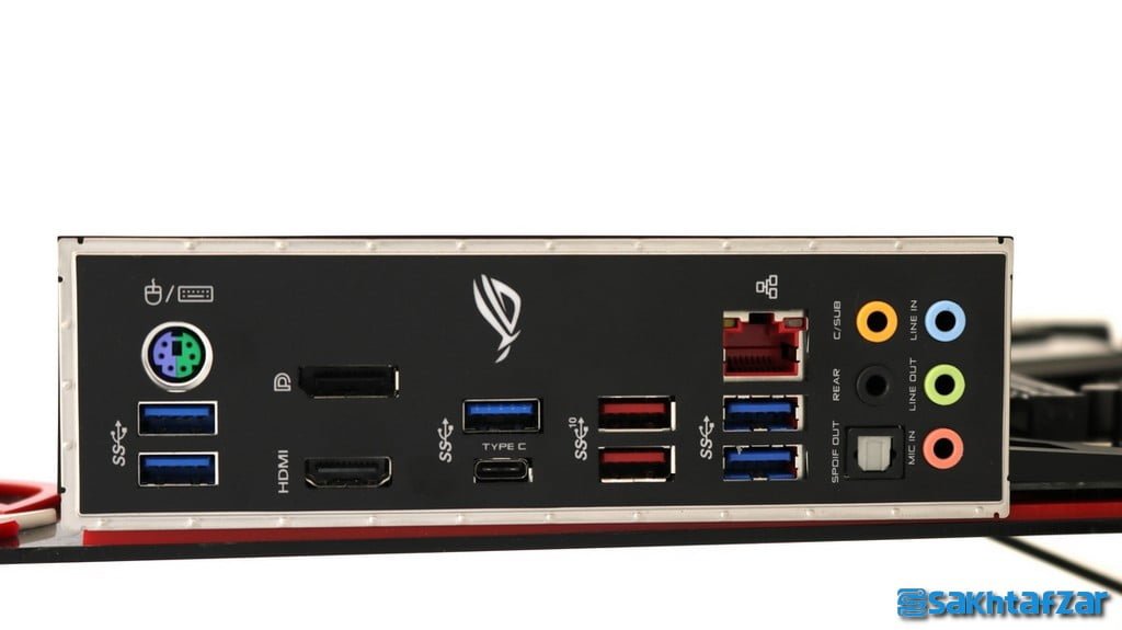 ایسوس تلاش کرده است با استفاده از پنل های پشتی ثابت در اغلب مادربردهای جدید خود، کاربران را از دردسر بزرگ جا انداختن پنل پشت مادربرد درون کیس رها سازد. این مادربرد نیز از پنل ثابت پشتی بهره می برد. که روی آن انواع خروجی های متنوع حضور دارند.