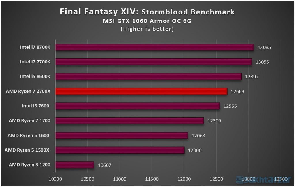 در تست بنچ مارک بازی Final Fantasy XIV، قدرت گیمینگ 2700X بالاتر از پردازنده های 1700X و i5 7600 اینتل قرارگرفت و این نشان از بهبود واقعی عملکرد 2700X در بحث گیمینگ است.