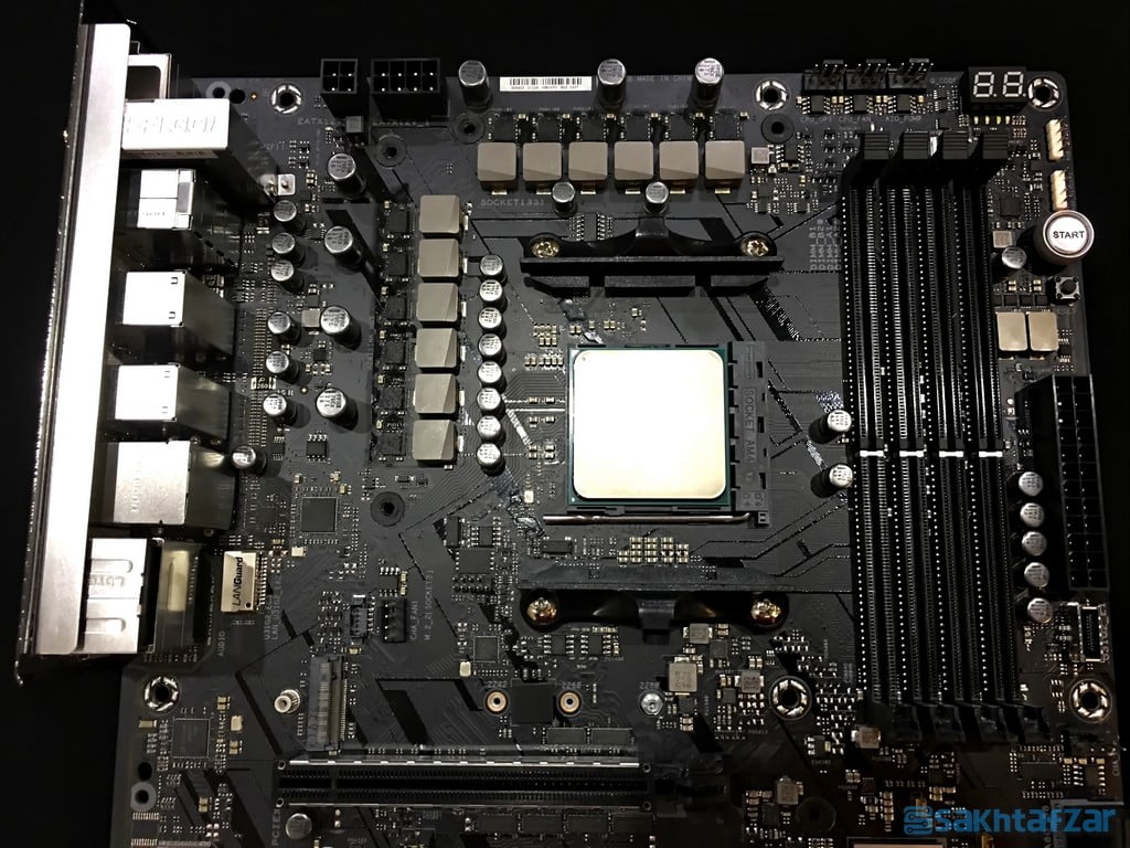 سوکت AM4 هم در وسط تصویر قابل مشاهده است، سوکتی قدیمی که شرکت AMD برای رایزن همچنان استفاده می کند و به این راحتی ها دست بردار نیست. می توان گفت تنها عنصری که بر تن این مادربرد فوق پیشرفته زار می زند پلاستیک های نگهدارنده کولر AMD است که بدجوری یاد و خاطره گذشته را برای دوستاران AMD زنده نگاه می دارد.