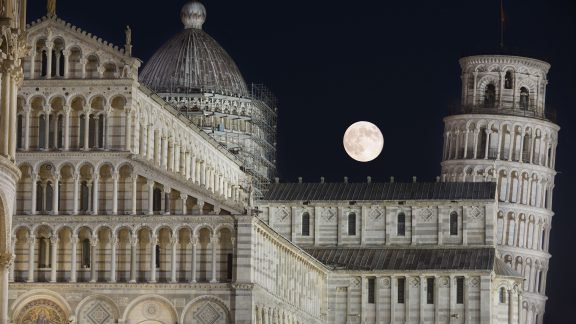 ماه غرش گر بر فراز برج پیزا (عکس از Marco Meniero)