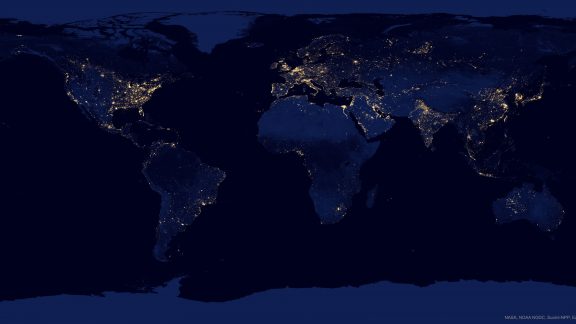 زمین در شب (عکس از ناسا، NOAA و NGDC)