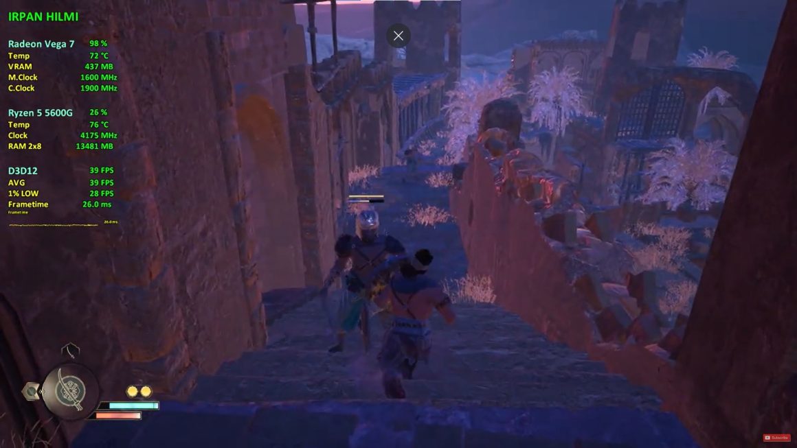 کانال یوتیوب Irpan Hilmi، نسخه PC بازی Blood of Mehran را روی سه رزولوشن 1080p، 720p و 900p بررسی کرده است. ابتدا ما اعلام کنیم که این یوتوبر، بازی مذکور را روی پردازنده AMD Ryzen 5 5600G با 16 گیگابایت حافظه رم DDR4 و کارت گرافیک Radeon Vega 7 512MB اجرا کرده است. لازم به ذکر است که کارت گرافیک یکپارچه Radeon Vega 7 512MB (محصول سال 2021) معمولاً برای اجرای بازی‌های کم‌حجم مانند «ماینکرفت» (Minecraft) و «فورتنایت» (Fortnite) مناسب است و به‌هیچ‌وجه توانایی اجرای بازی‌های سنگین و AAA را ندارد.