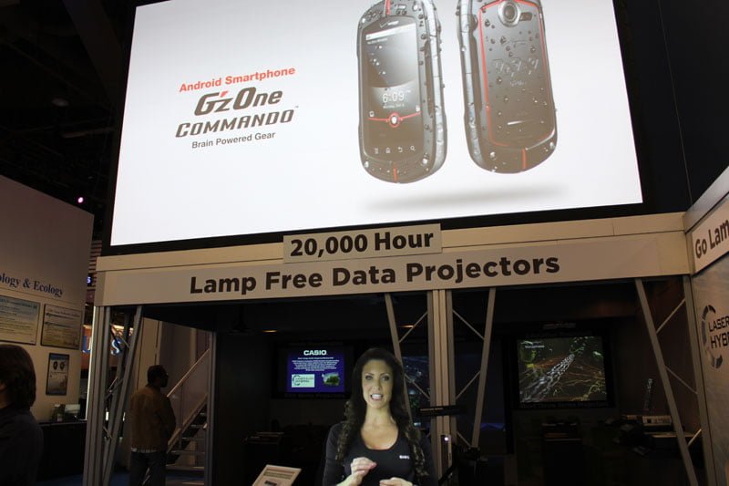 خوب نوبت به یکی از سازندگان قدیمی ماشین حساب و ارگ رسید. بله درست حدس زدید کاسیو شرکتی است که هنوز هم به ساخت این محصولات پایبند است و یک قدم هم دوست ندارد عقب نشینی کند! اما این شرکت در نمایشگاه علاوه بر این موارد محصولات دیگری را هم عرضه کرده بود. در غرفه این شرکت تلفن های مقاوم در مقابل ضربات و آب دیده می شد که با توجه به تجربه کاسیو در زمینه ساخت ساعت های G Shock چندان دور از ذهن نیست. این تلفن که Gzone Commandio نام دارد دارای سیستم عامل اندروید است و از طراحی خوبی برخوردار است.