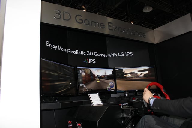 در حرکتی دیگر ال جی برای نمایش قدرت مانیتورهای مجهز به پنل IPS یک سیستم مخصوص با سه مانیتور در نظر گرفته بود که در آن هر سه مانیتور از فناوری سه بعدی هم پشتیبانی می کردند و کاربر به راحتی می توانست هم تجربه استفاده از مانیتور IPS و تاثیر آن را بر زاویه دید سه بعدی، کاهش تغییر کیفیت تصویر در حالت تغییر زاویه را تجربه کند. البته برای نمایش تفاوت کیفیت ال جی سه مانیتور استاندارد خود را در زاویه مختلف در کنار مانیتورهای IPS خود قرار داده بود. علاوه بر این در بخش مانیتور ال جی محصولات جدید خود را که قابلیت تبدیل تصاویر دو بعدی به سه بعدی را داشتند را هم به نمایش گذاشته بود. به این موارد باید تلویزیون های مجهز به پنل IPS، سیستم های کامپیوتری، مانیتور و نوت بوک بدون نیاز به عینک، نلویزیون های هوشمند با قابلیت بروزرسانی، درایو نوری، سینمای صوتی و دیگر امکاناتی که بزودی وارد بازار می شود را هم اضافه کرد. توضیح کامل در این مورد را در نشریه شماره آینده نشریه سخت افزار بخوانید.
