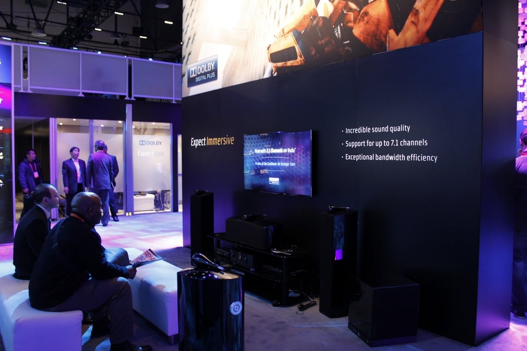 اگر اهل فیلم و موسیقی باشید به طور حتم برای یکبار هم شده لوگوی Dolby را روی محصولات مختلف صوتی و تصویری دیده اید. این شرکت در نمایشگاه CES امسال حضور پررنگی داشت و در غرفه به نسبت بزرگ خود که در مقابل غرفه اینتل و مایکروسافت بود حسابی غوغا کرد در این غرفه کاربران می توانستند تفکیک پذیری استاندارد جدید Dolby Digital Plus را از نزدیک تجربه کنند. جای همه دوستان مشتاق صدا و موسیقی خالی بود. همچنین در غرفه دالبی می توانستید صدای دالبی 7.1 کانال را در یک اتاق نمایش دیدنی تجربه کنید. البته باید برای این موضوع کمی صبر کنید چون افراد زیادی منتظر تجربه این موضوع هستند.