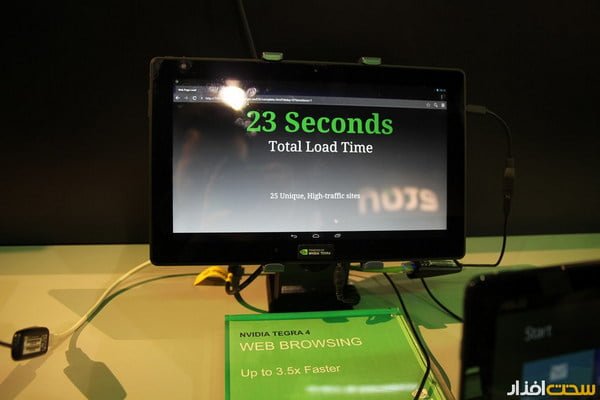 پلتفرم های Tegra 3 و Tegra 4 نیز روی چندین تبلت نمایش داده شده بودند. یک تبلت نمونه مجهز به تگرا 4 در این قسمت وجود داشت که کارایی آن در مرور صفحات وب، 3.5 برابر بهتر از پلتفرم قبلی ذکر شده است. یک برچسب روی نام این تبلت را پوشانده است، اما از روی ظاهر تبلت و چیدمان دکمه ها در اطراف میتوان حدس زد این تبلت یکی از تولیدات اسوس سری ترنسفورمر باشد.