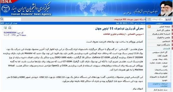 روز شنبه دهم تیر وقتی مشغول چک کردن RSS سایت های ایرانی بودم، به خبری درباره این همین نوت بوک در سایت برسام برخوردم. متن خبر دقیقاً مشابه همانی بود که در سایت سخت افزار منتشر شده (البته با اضافه شدن نام یک کارشناس) و منتظر بودم در پایین خبر، طبق معمول سایت برسام (که همیشه منابع خبری اش را ذکر میکند و از این بابت ایرادی به او وارد نیست)، عبارت “منبع: سایت سخت افزار” را مشاهده کنم. اما در کمال تعجب دیدم که منبع خبر، سایت ایسنا ذکر شده است!