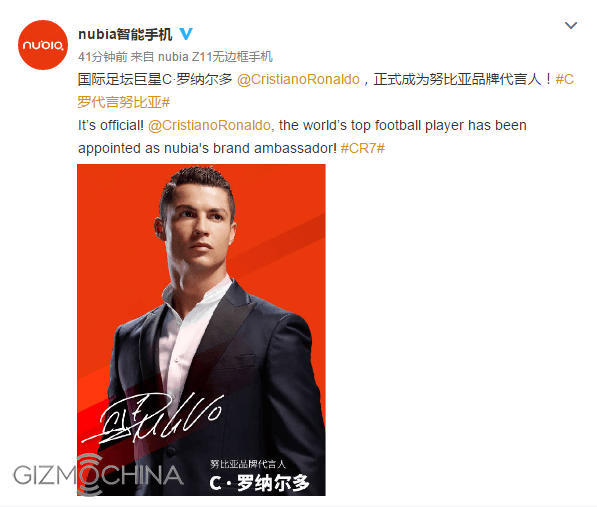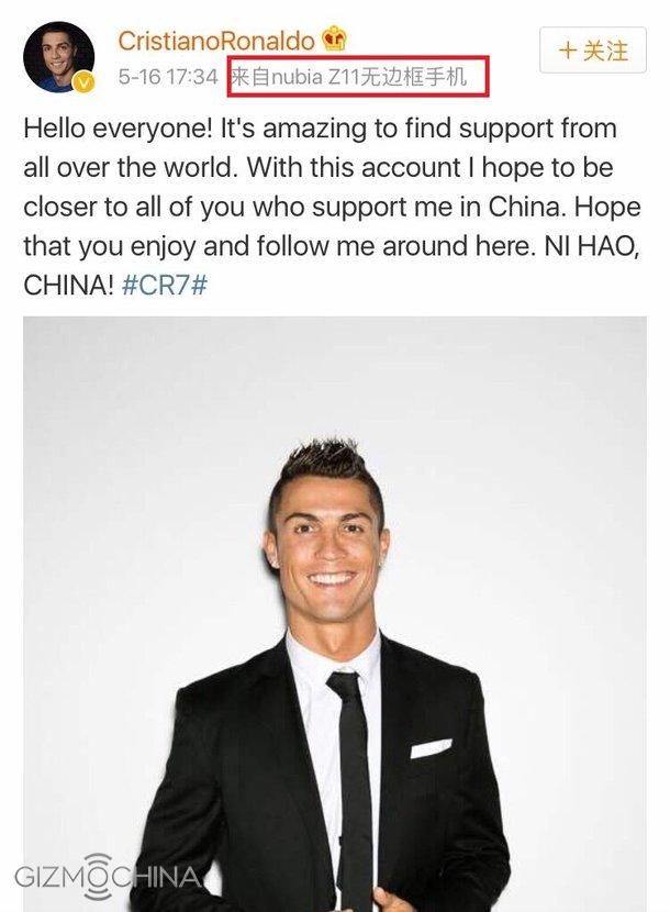 مدتی پیش به اطلاع شما رساندیم که لیونل مسی، فوق ستاره ی آرژانتینی تیم بارسلونا سفیر کمپانی هواوی شد. حال نوبت به آن رسیده است تا جدی ترین رقیب مسی، کریس رونالدو وارد این عرصه شود و کمپانی Nubia رسما اعلام کرده است این بازیکن پرتغالی سفیر جدید این برند است. در حالی که Nubia در حال معرفی رونالدو به عنوان سفیر جدید خود بود، ستاره ی رئال مادرید ورود خود را در صفحه ی شخصی Weibo خود اعلام کرد و مشخص است رونالدو قصد دارد خیلی زود خود را بیش از پیش به طرفداران چینی خود نزدیک کند. نکته ی جالب این است که پستی که کریس رونالدو ارسال کرده بود توسط گوشی هوشمند Nubia Z11 Mini ارسال شده است.