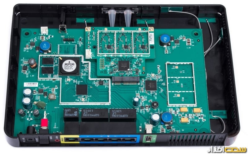 از آنجا که هنوز چیپستهای شبکه آنقدر پیشرفته نشدهاند که همه چیز را در یک چیپست مجتمع کنید، برای هر بخش از یک چیپست مجزا استفاده شده است. برای پورت شبکه 802.11ac از ماژول Alpha Networks WMC-AC01 استفاده شده است که از رابط Mini PCIe و چیپست Broadcom BCM4360 بهره میبرد. این چیپست از قابلیت MIMO 3×3:3 نیز پشتیبانی مینماید. برای رابط بیسیم 802.11n نیز از چیپست Broadcom BCM4331 بهره گرفته شده که این چیپست نیز از قابلیت MIMO 3×3:3 پشتیبانی میکند. مدیریت پورتهای گیگابیتی (یک پورت WAN و چهار پورت LAN) نیز بر عهده چیپست BCM4706 و سوئیچ BCM53125 است. پردازش اطلاعات بر عهده پردازشگر Broadcom BCM4706 بوده و 256 مگابایت حافظه RAM نیز برای آن در نظر گرفته شده است.