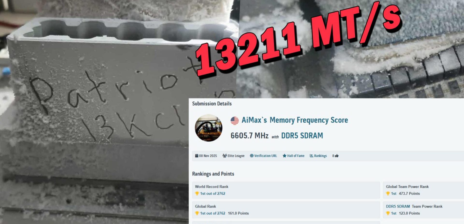 2. رکورد جهانی اورکلاک DDR5 دوباره شکسته شد: دستیابی به سرعت MT/s 13211