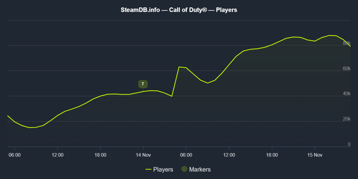 بر اساس گزارشهای منتشر شده، بازی Black Ops 7 در ساعات ابتدایی انتشار نتوانست به اندازه نسخههای پیشین خود بازیکن جذب کند و آمار اولیه آن به شکل قابلتوجهی پایینتر از انتظارات بود. دادههای سامانه SteamDB نشان میدهد که در لحظه عرضه، تنها 62 هزار و 938 بازیکن به طور همزمان در لانچر Call of Duty در استیم حضور داشتند. این اعداد حاکی از کاهش شدید هیجان جامعه گیمرها برای جدیدترین عنوان این فرانچایز بزرگ است.