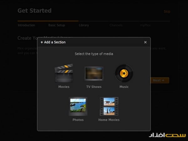 پس از دانلود فایل 65 مگابایتی این نرمافزار و نصب آن، یک آیکون کوچک در کنار ساعت قرار گرفته و با کلیک روی آن، پنجره کار با Plex در مرورگر وب باز میشود. در ابتدای کار، یک راهنما شما را در اضافه کردن انواع محتوا و راهاندازی اولیه Plex یاری میکند که خوشبختانه طراحی سادهای نیز دارد.