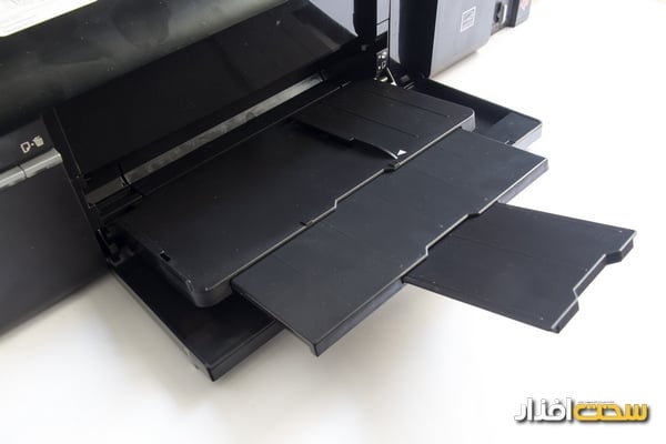 درست در سمت چپ درب، سه کليد خاکستري به نسبت بزرگ ديده ميشود که به ترتيب از راست به چپ براي خاموش و روشن کردن دستگاه، هشدار اتمام جوهر و انصراف دادن از چاپ و خروج کاغذ از پرينتر استفاده ميشود. ورودي کاغذ هم مانند ديگر محصولات در بالاي دستگاه قرار دارد و کاربر ميتواند حداکثر 120 برگ کاغذ A4 را براي چاپ در اين بخش قرار دهد.