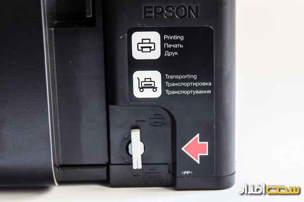 در بخش پشتي دستگاه هم تنها پورت USB نسخه دو و کانکتور برق قرار دارد که با فاصله از يک ديگر در اين بخش تعبيه شدهاند. در سمت چپ بدنه دستگاه امکان خاصي ديده نميشود اما در سمت راست شاهد تعبيه يک سيستم تغذيه پيوسته جوهر طراحي شده توسط اپسون هستيم. اين سيستم که به صورت يک جعبه مستطيلي شکل مشکي رنگ است با استفاده از گيرههاي پلاسيتکي در کنار پرينتر نصب ميشود. در داخل اين جعبه مستطيلي مشکي رنگ شش عدد تانک از رنگهاي مختلف وجود دارد (البته براساس مدل تعداد تانکهاي جوهر فرق ميکند) که با استفاده از لولههاي منعطف که براي اين کار در نظر گرفته شده است جوهر را از تانکها خارجي به تانکهاي تعبيه شده روي هد منتقل ميکند. روي هر کدام از اين تانکها يک دريچه کوچک قرار دارد که با باز کردن ان امکان اضافه کردن جوهر با کمترين دردسر فراهم ميشود. اپسون براي افرايش امنيت و مديريت بهتر اين سيستم يک اهرم کوچک خاکستري را در نظر گرفته است که در هنگام حمل و نقل براي جلوگيري از بازگشت جوهر بايد آن را در وضعيت بسته قرار دهيد.