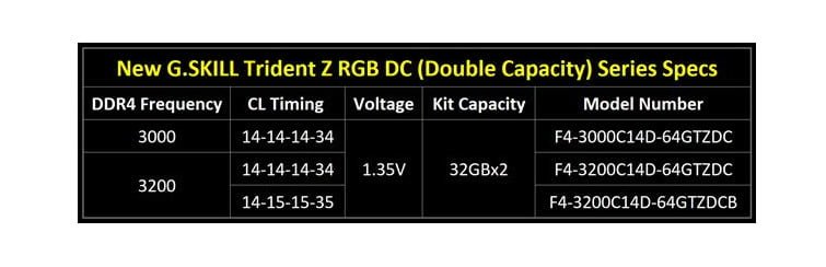 رم های Trident Z RGB DC، دارای فناوری LED RGB هستند و ضمن پشتیبانی از پروفایل Intel XMP 2.0، در فرکانس های 3000 الی 3200 مگاهرتز تولید می شوند. همچنین ولتاژ راه انداز 1.35 ولت بوده و تایمینگ آنها نیز CL14 بوده که رقم مناسبی است. از آنجایی که فناوری تولید رم های DC DIMM توسط سامسونگ ارائه شده است، G.Skill نیز از تراشه های Samsung B-die استفاده می کند.